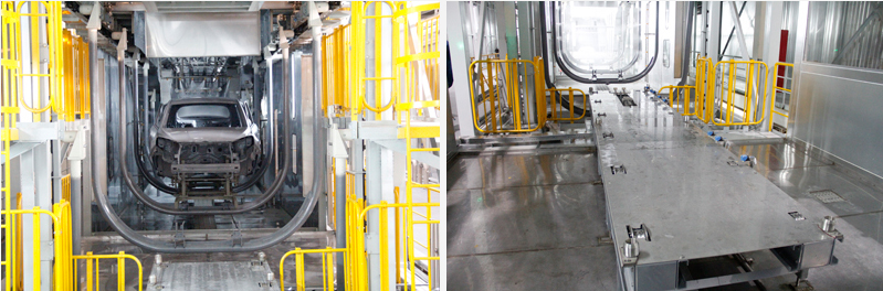 The workshop production line passes the maximum body-in-white weight: 500Kg/set.