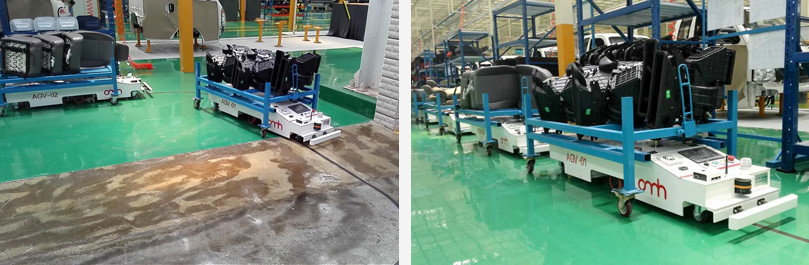 云南力帆駿馬車輛有限公司主要生產(chǎn)輕卡和重卡整機(jī)生產(chǎn),該AGV項(xiàng)目用于總裝車間線邊物料的配送以及空料車回收,滿足生產(chǎn)線40JPH節(jié)拍。AGV采用磁道航導(dǎo)引系統(tǒng),并通過(guò)控制系統(tǒng)與其他管理系統(tǒng)即時(shí)通訊,可實(shí)現(xiàn)無(wú)人自動(dòng)化運(yùn)輸,是汽車行業(yè)等提升行業(yè)競(jìng)爭(zhēng)力、減少人工成本、提高倉(cāng)配效率的選擇。