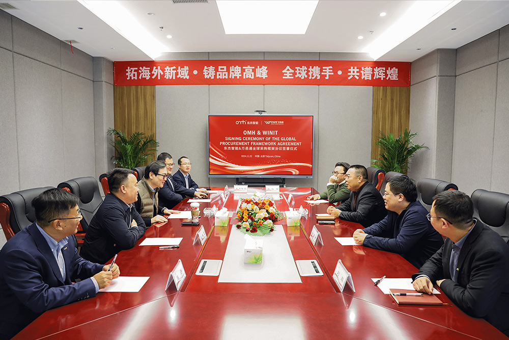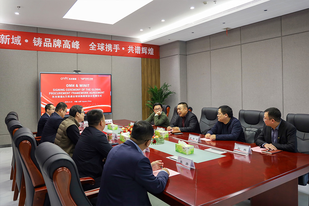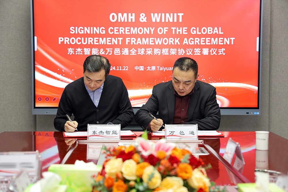 2024年11月22日,東杰智能&萬(wàn)邑通全球采購(gòu)框架協(xié)議簽署儀式在東杰智能總部成功舉行,合同總金額近7億元。儀式由東杰智能副總裁郭強(qiáng)忠主持,出席儀式的有:萬(wàn)邑通董事長(zhǎng)兼CEO陳宏偉、信息總經(jīng)理徐國(guó)才,東杰智能董事長(zhǎng)婁剛、總裁王振國(guó)、董事長(zhǎng)助理陳晨、財(cái)務(wù)總監(jiān)張路、副總裁劉鵬。此次協(xié)議的簽署,標(biāo)志著雙方在全球物流領(lǐng)域的合作邁向新高度。